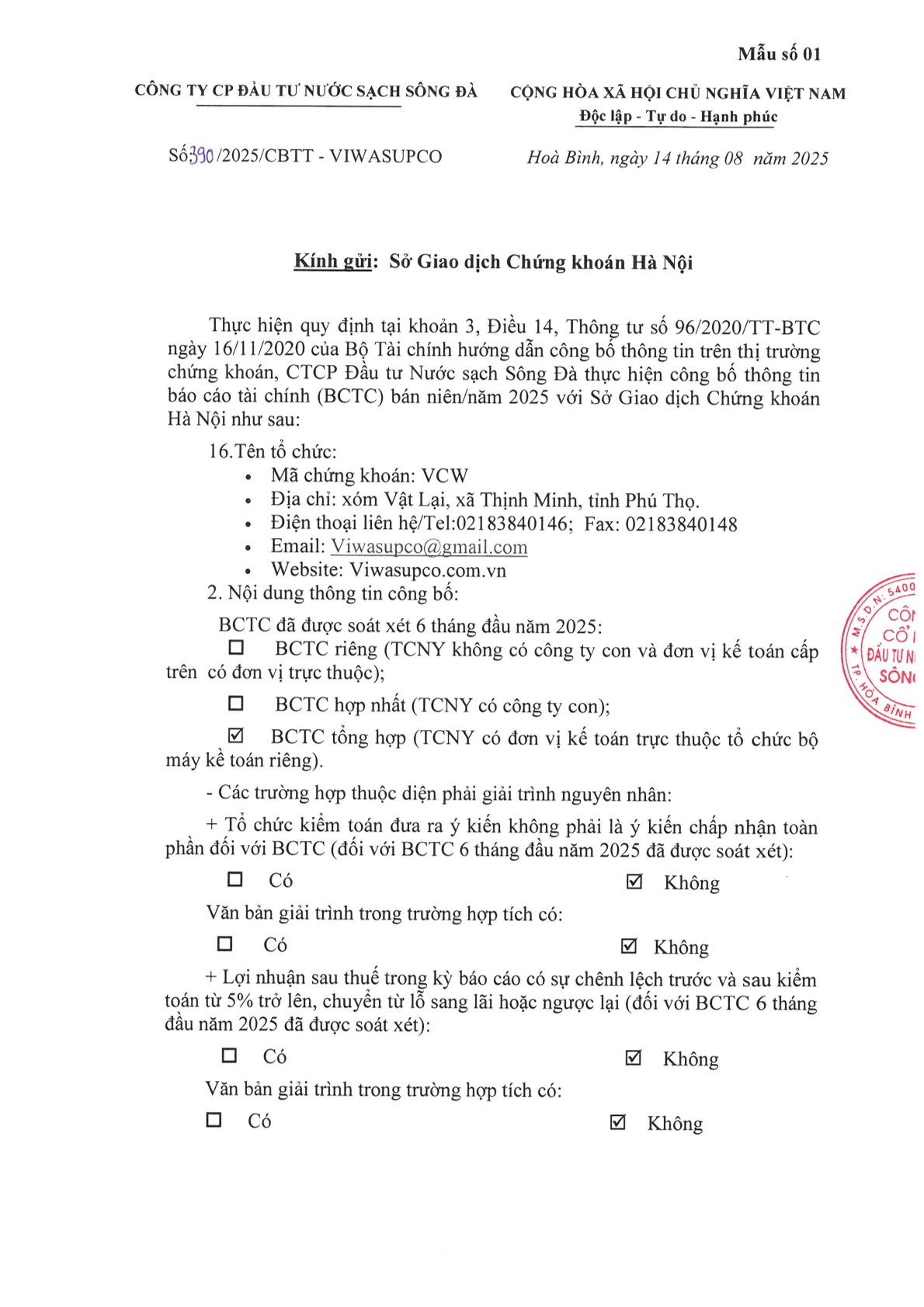 CBTT Báo cáo Tài chính bán niên năm 2025 đã được soát xét15/08/2025Báo cáo tài chính, Lượt xem: 375 Để xem Báo cáo Tài chính bán niên năm 2025 đã được soát xét của Công ty, xin vui lòng mở file đính kèm. Trân trọng ! bctc_ban_nien_2025__tieng_viet_signed.pdf bctc_ban_nien_2025__english__signed.pdfChia sẻ: