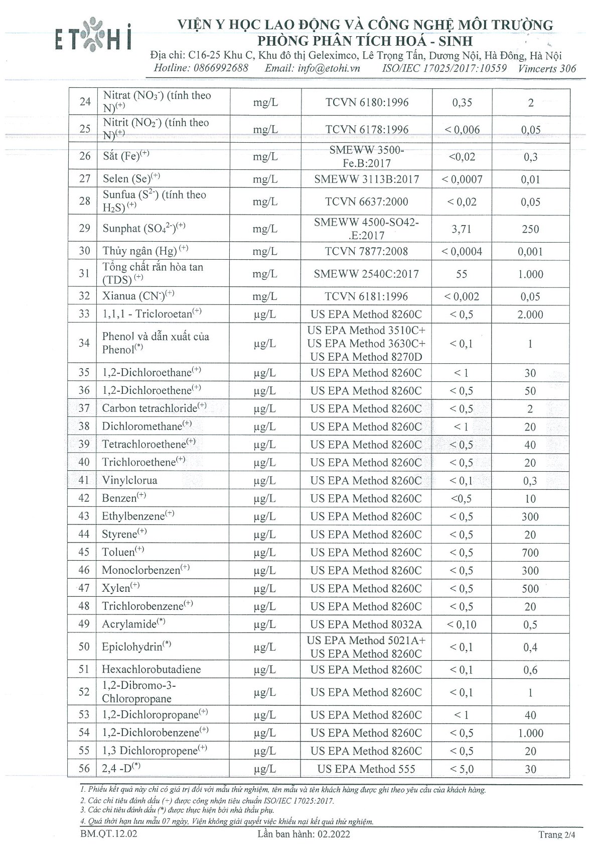Chi tiêu chất lượng nước ngày 21 và 23 tháng 9 năm 2022 đã qua thử nghiệmChi tiêu chất lượng nước ngày 21 và 23 tháng 9 năm 2022 đã qua thử nghiệm Để xem chi tiết Chi tiêu chất lượng nước ngày 21 và 23 tháng 9 năm 2022 đã qua thử nghiệm, xin vui lòng mở file đính kèm, cảm ơn ! Tên FileNgày đăngTải về23-9-2022-AB.pdf12/10/202221-9-2022-ab.pdf12/10/2022