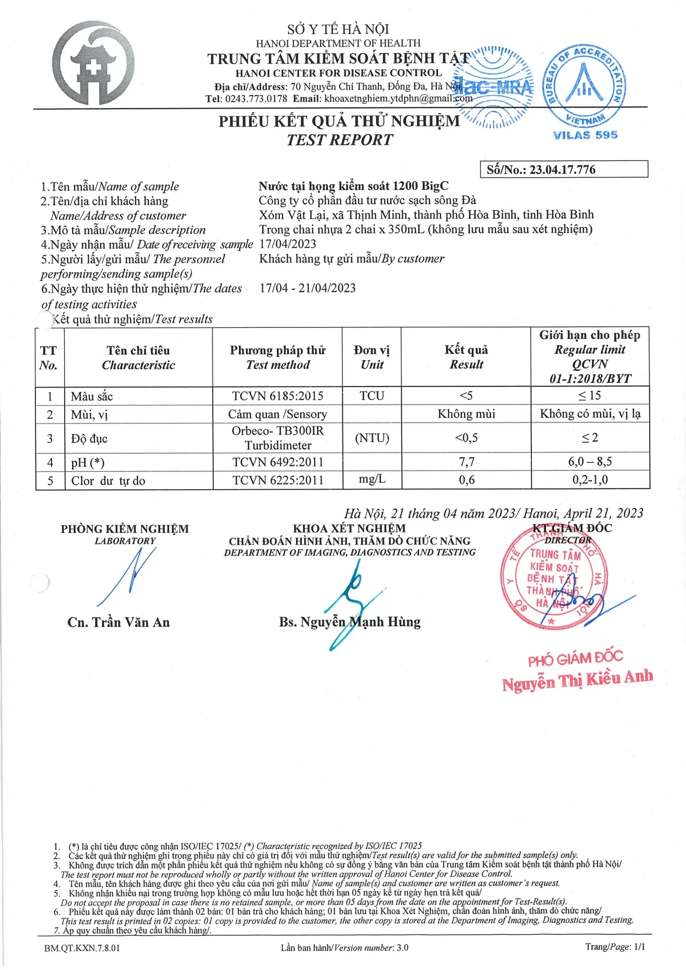 Chỉ tiêu chất lượng nước tháng 04/2023 đã qua thử nghiệm (Nước tại học kiểm soát 1200 BigC) ten_filengay_dangtai_veYTDPHN 4-2023-VĐ3.pdf05/05/2023