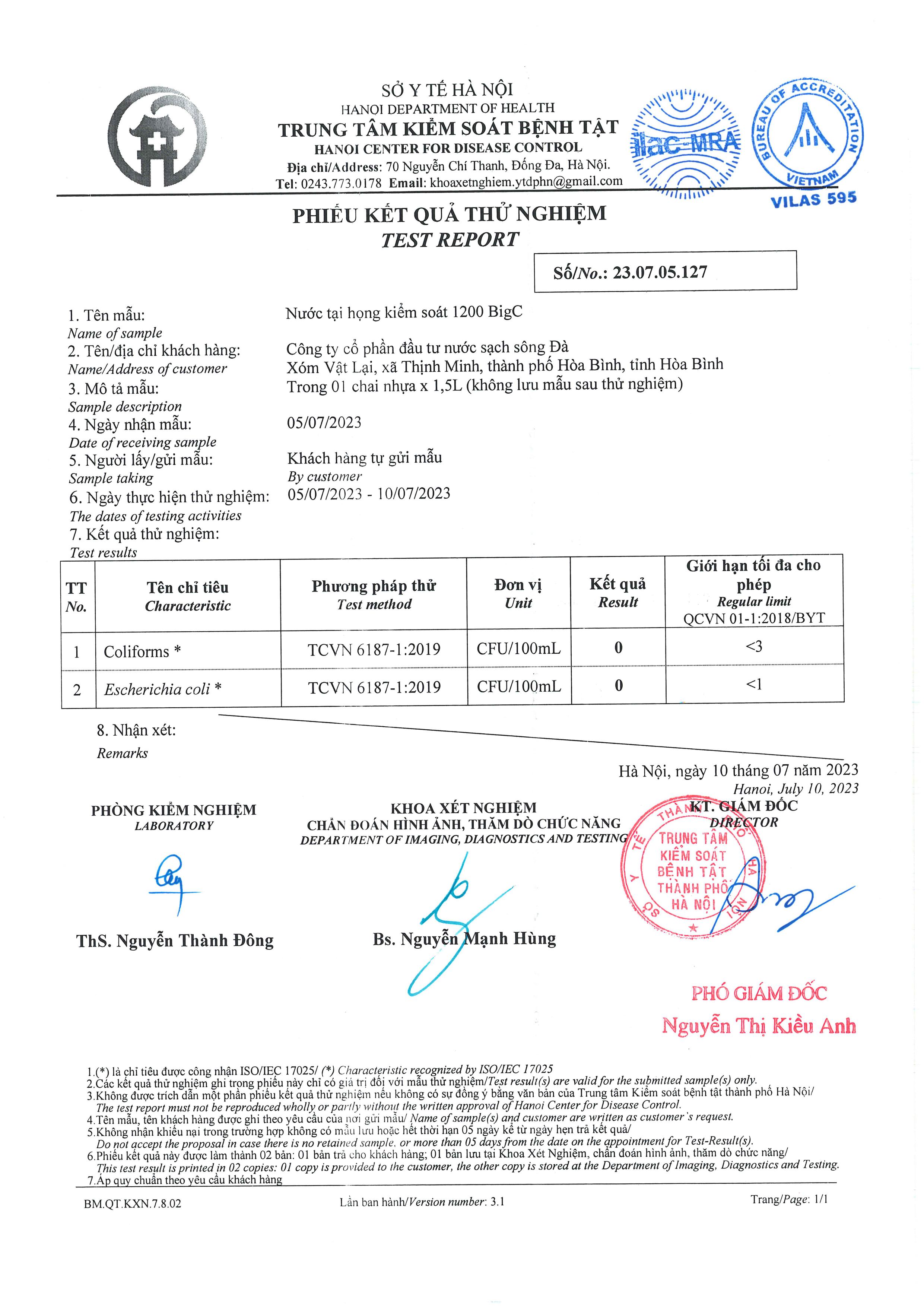 Chỉ tiêu chất lượng nước tháng 07/2023 đã qua thử nghiệm (Nước tại học kiểm soát 1200 BigC) Tên FileNgày đăngTải về5-7-2023-bigc.pdf25/08/2023