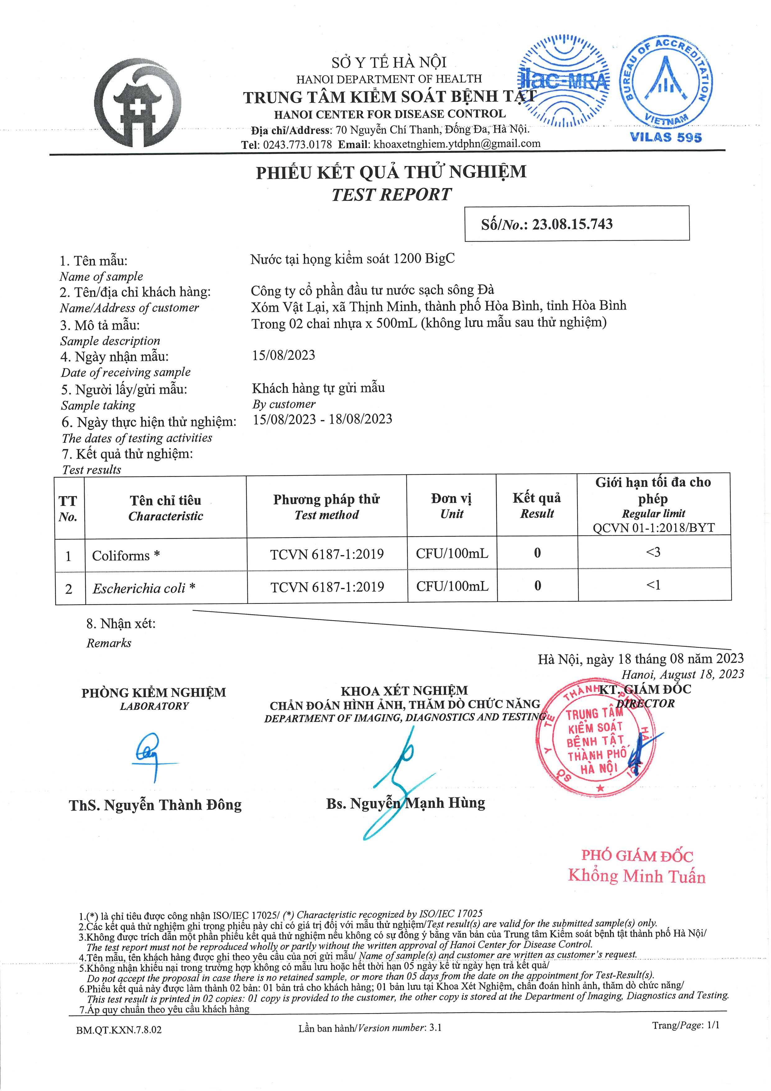 Chỉ tiêu chất lượng nước tháng 08/2023 đã qua thử nghiệm (Nước tại học kiểm soát 1200 BigC) Tên FileNgày đăngTải về15-08-23-bigc.pdf25/08/2023