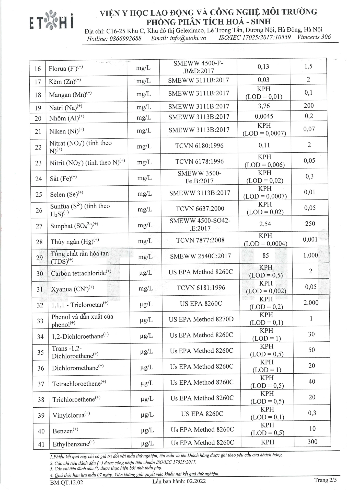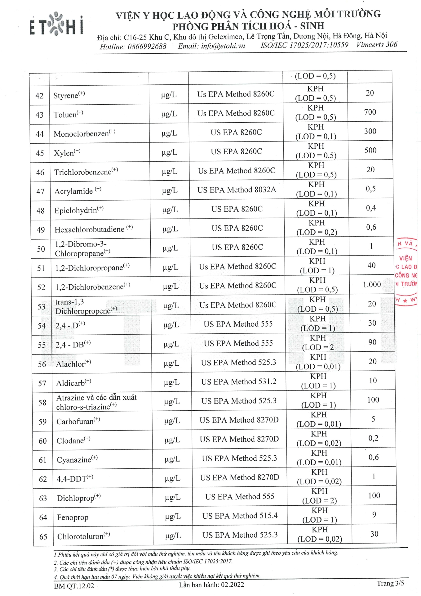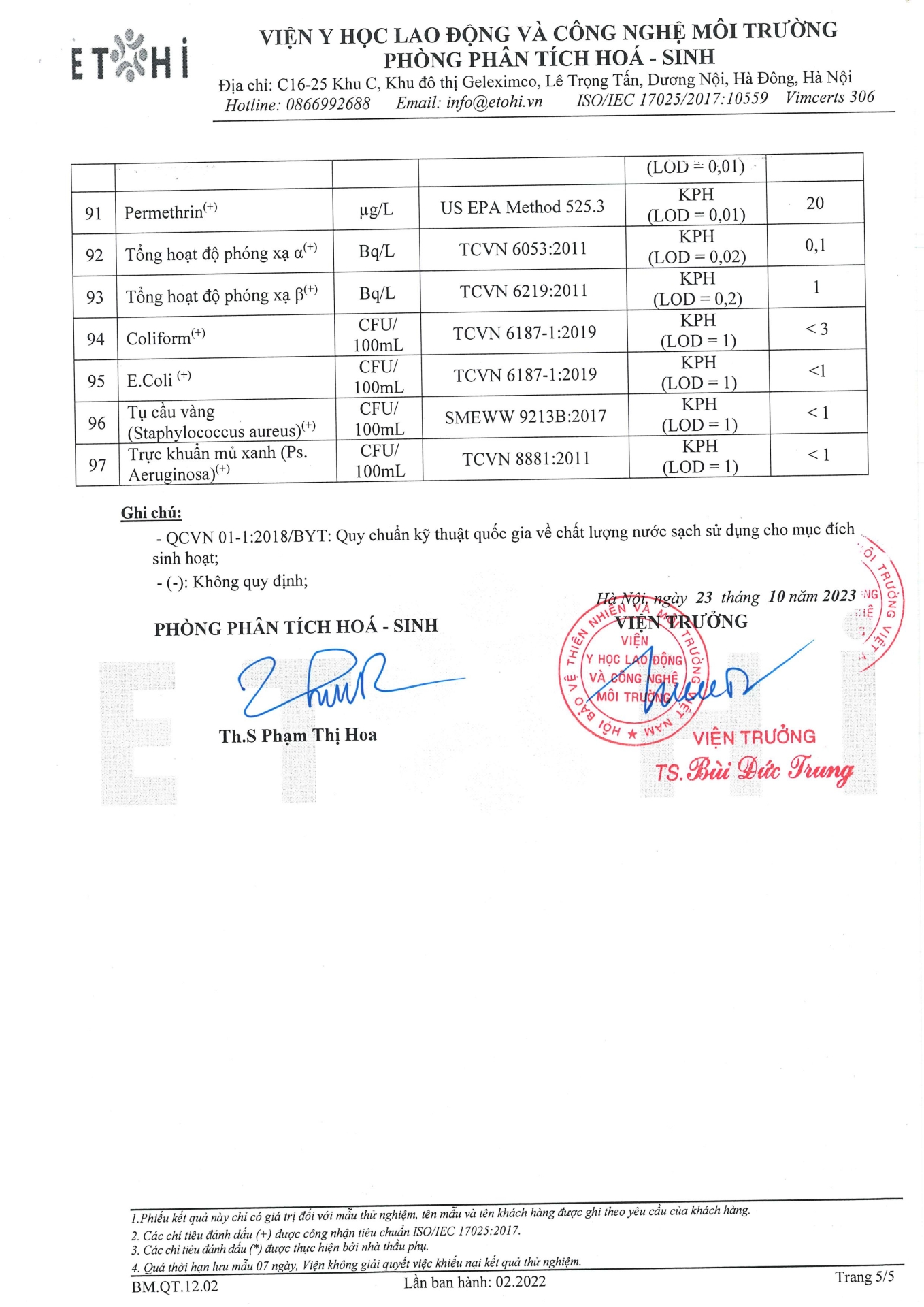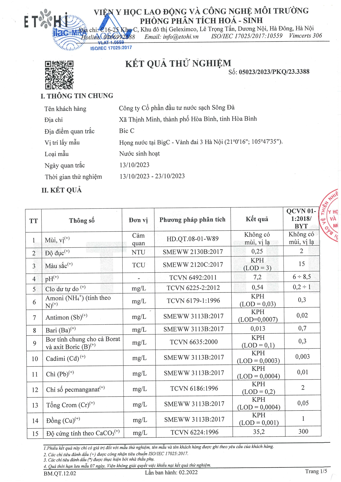 Chỉ tiêu chất lượng nước tháng 10/2023 đã qua thử nghiệm (Nước sinh hoạt - họng nước tại BigC) Tên FileNgày đăngTải vềkqxn-chat-luong-nuoc-thang-10-223.pdf30/10/2023