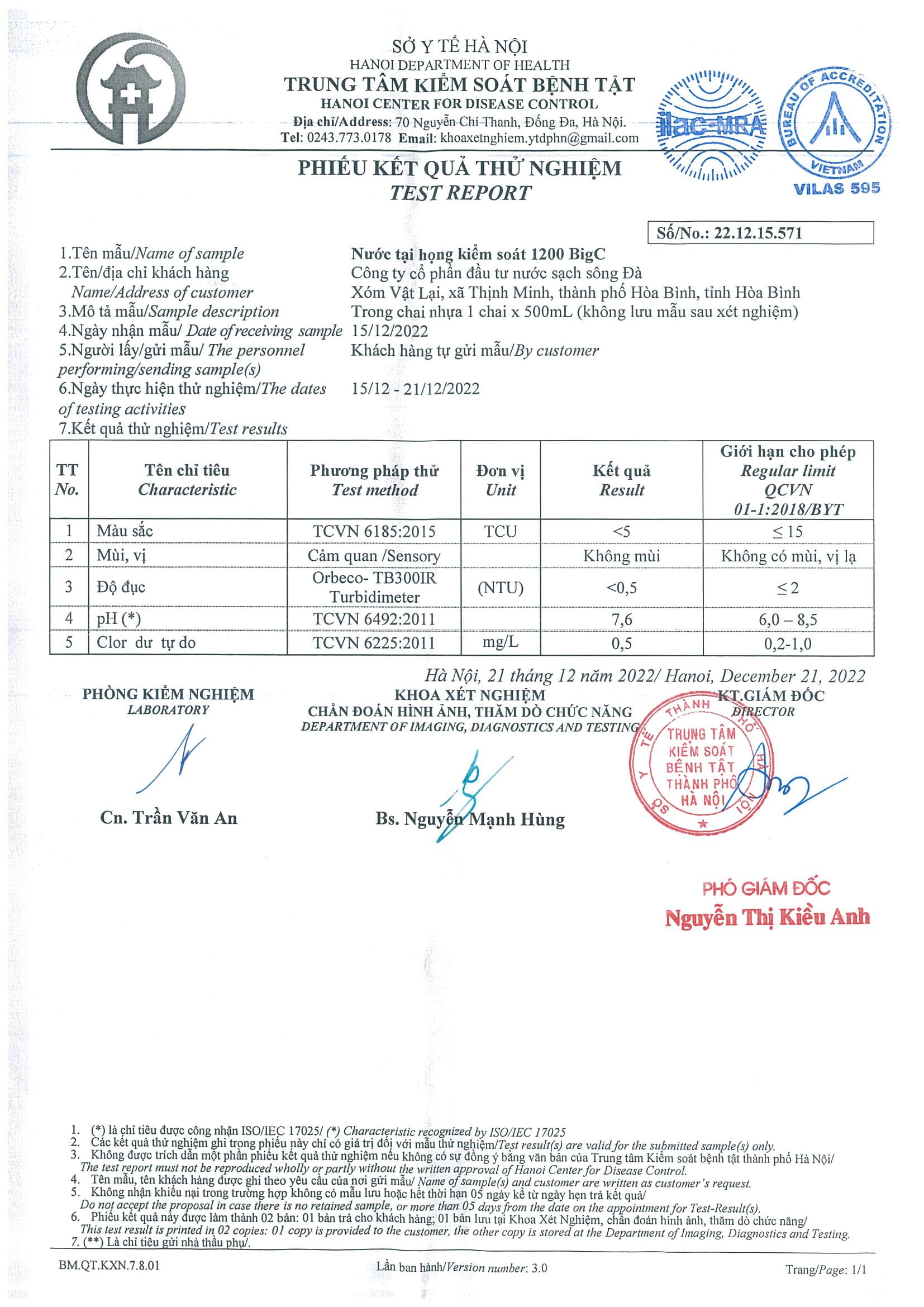 Chỉ tiêu chất lượng nước tháng 12/2022 đã qua thử nghiệm (Nước tại học kiểm soát 1200 BigC)11:13 - 29/12/2022Chất lượng nước hàng tháng, Lượt xem: 820Chỉ tiêu chất lượng nước tháng 12/2022 đã qua thử nghiệm (Nước tại học kiểm soát 1200 BigC) ytdp 12-2022 - bigc.pdfChia sẻ: