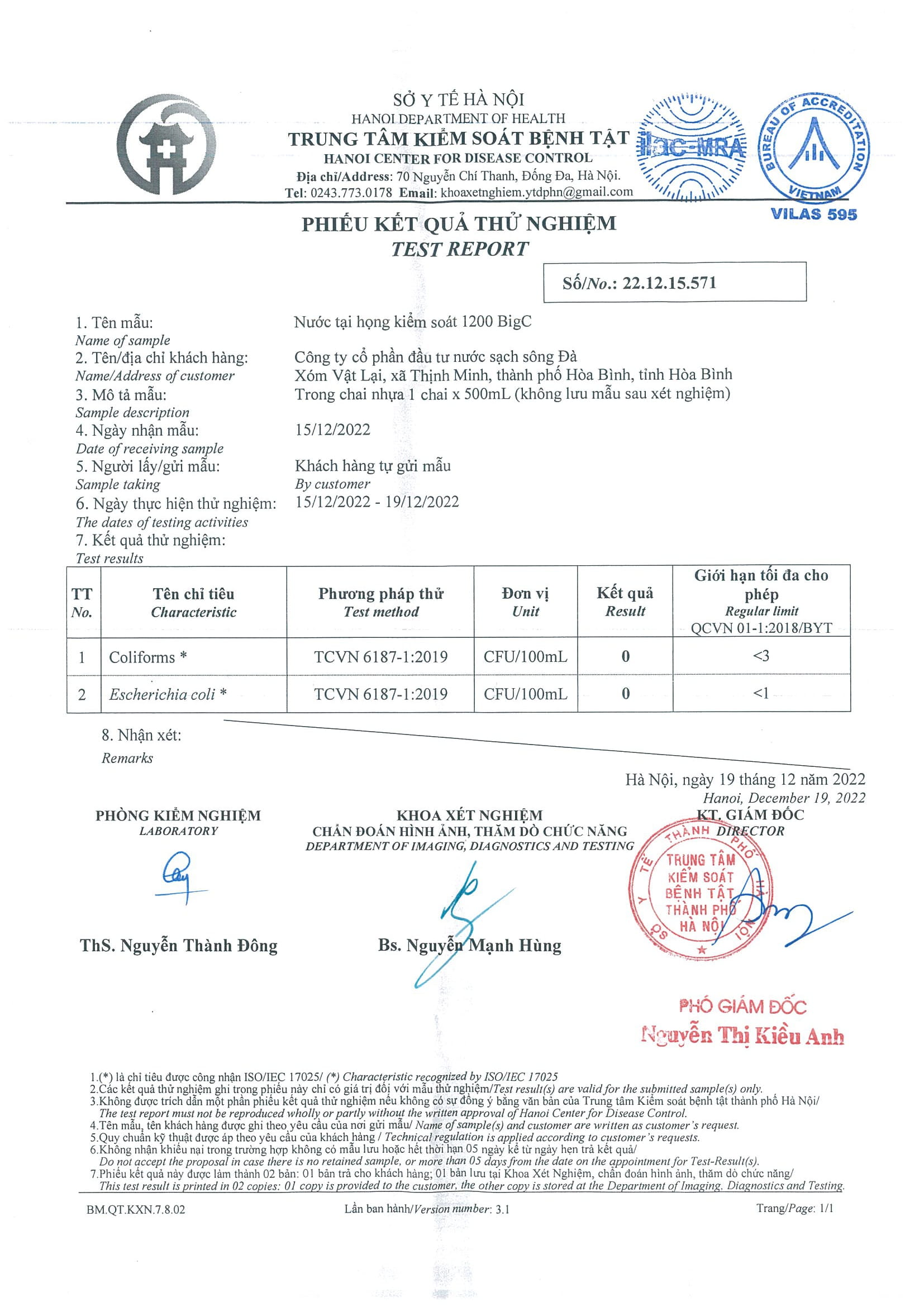 Chỉ tiêu chất lượng nước tháng 12/2022 đã qua thử nghiệm (Nước tại học kiểm soát 1200 BigC)Chỉ tiêu chất lượng nước tháng 12/2022 đã qua thử nghiệm (Nước tại học kiểm soát 1200 BigC) Tên FileNgày đăngTải vềytdp 12-2022 - bigc.pdf29/12/2022