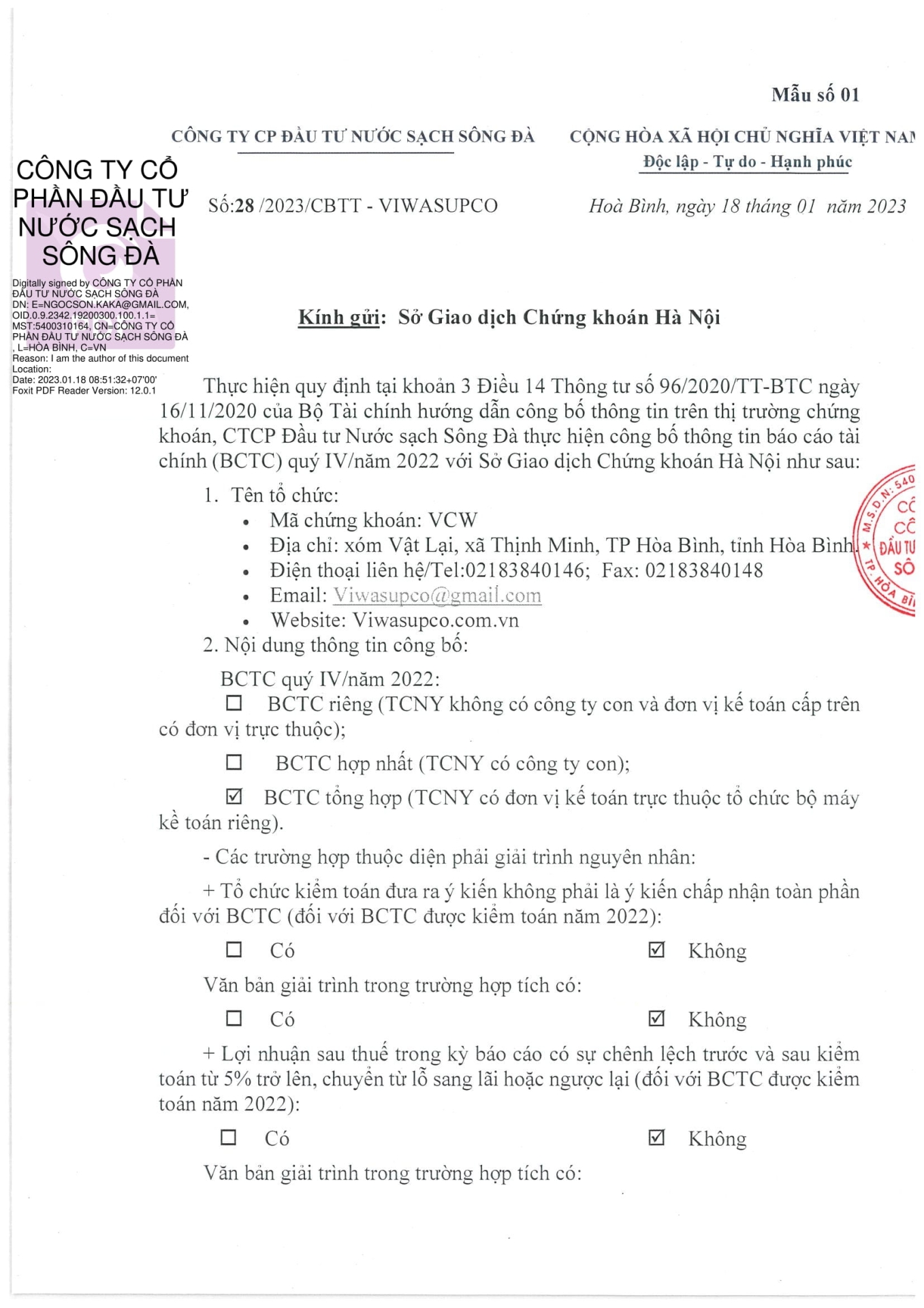 Công bố thông tin Báo cáo Tài chính Quý IV năm 2022