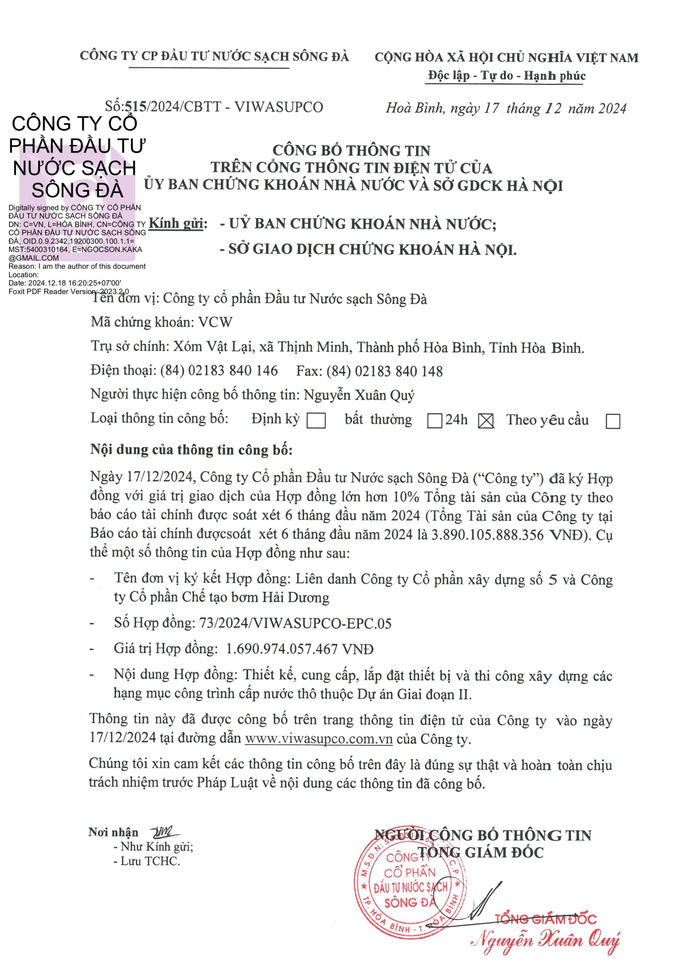 Chào mừng bạn đến với website chính thức của Công ty Cổ phần Đầu tư nước sạch Sông Đà