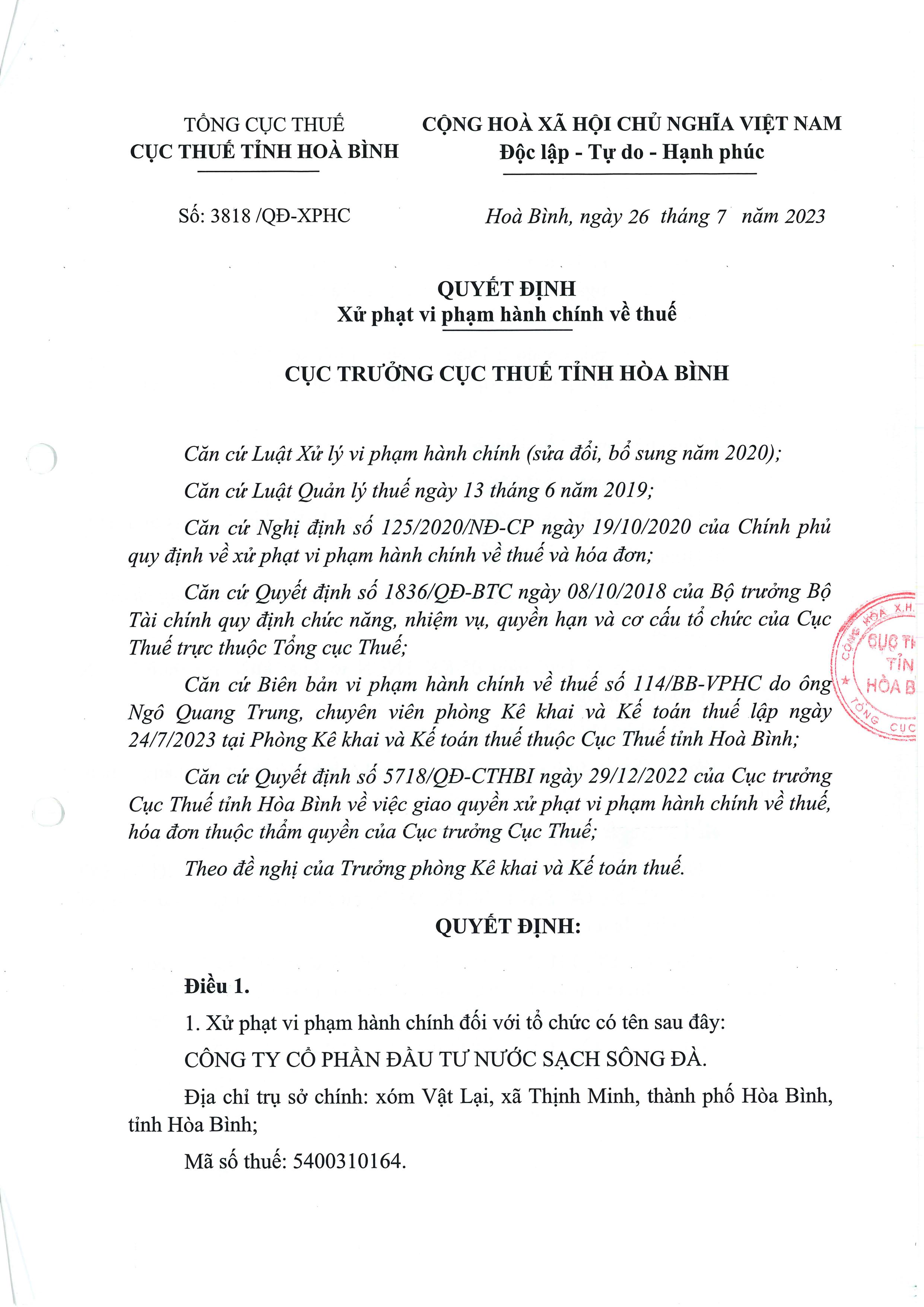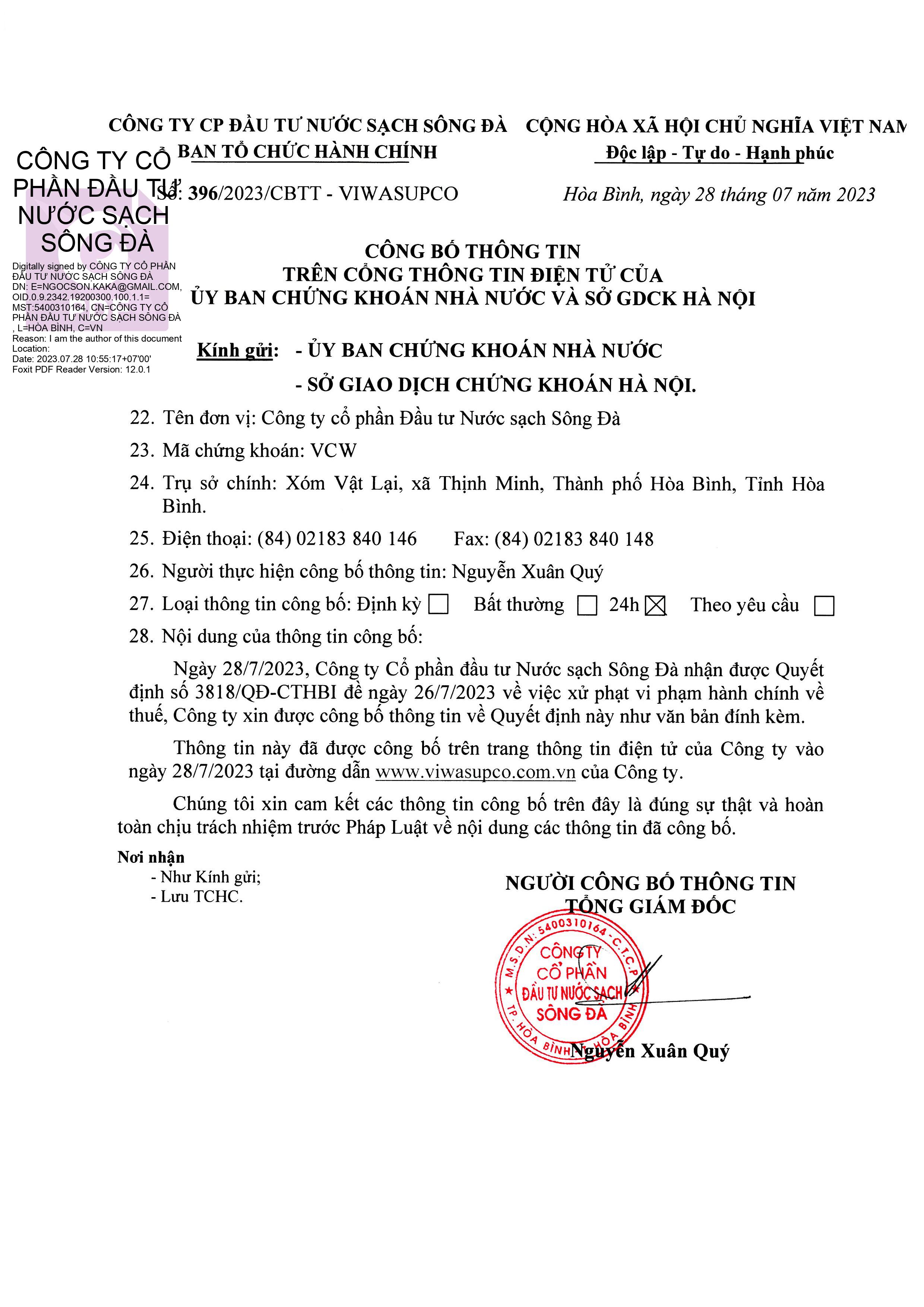 Văn phòng tại Hà Nội: Chi nhánh Công ty Cổ phần Đầu tư nước sạch Sông Đà - Ban quản lý Dự án nước sạch Sông Đà