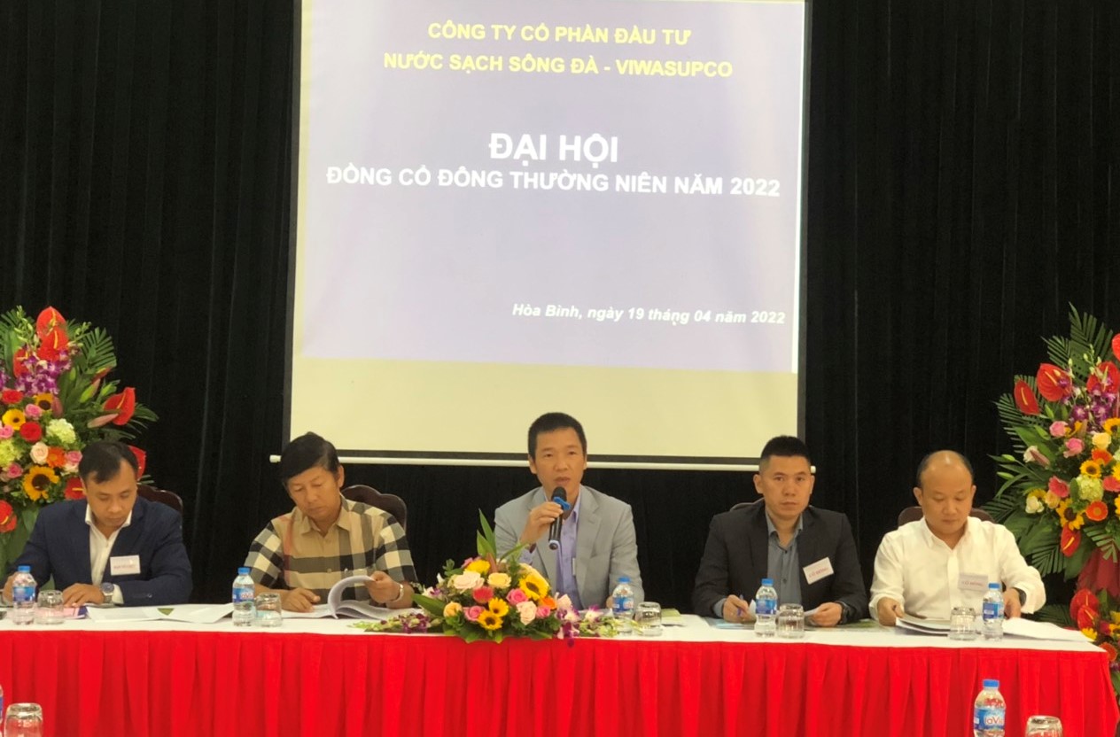Sáng ngày 19 tháng 04 năm 2022, Công ty Cổ phần Đầu tư Nước sạch Sông Đà đã tổ chức thành công Đại hội đồng cổ đông Thường niên năm 2022. Đại hội đã thông qua các báo cáo tổng kết hoạt động năm 2021, kế hoạch sản xuất kinh doanh năm 2022, bầu bổ sung Thành viên Ban kiểm soát Công ty nhiệm kỳ 2021-2026 và các nội dung quan trọng khác với sự đồng thuận cao của các cổ đông.