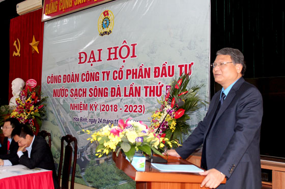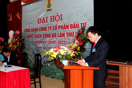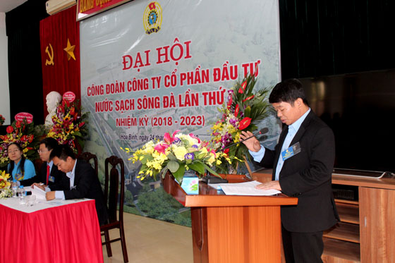 Đồng chí Hoàng Văn Anh – Chủ tịch Công đoàn Công ty báo cáo tổng kết công tác Công đoàn giai đoạn 2013 – 2018 và phương hướng nhiệm vụ của Công đoàn Công ty khóa III, nhiệm kỳ 2018 – 2023 với mục tiêu không ngừng đổi mới nội dung và phương thức hoạt động, nâng cao chất lượng tổ chức Đoàn Công ty vững mạnh về mọi mặt, nâng cao chất lượng đội ngũ công nhân viên góp phần xây dựng Công đoàn Công ty cổ phần Đầu tư Nước sạch Sông Đà nói riêng ngày càng phát triển bền vững, đồng thời góp phần xây dựng Công đoàn Tổng Công ty Vinaconex phát triển toàn diện.