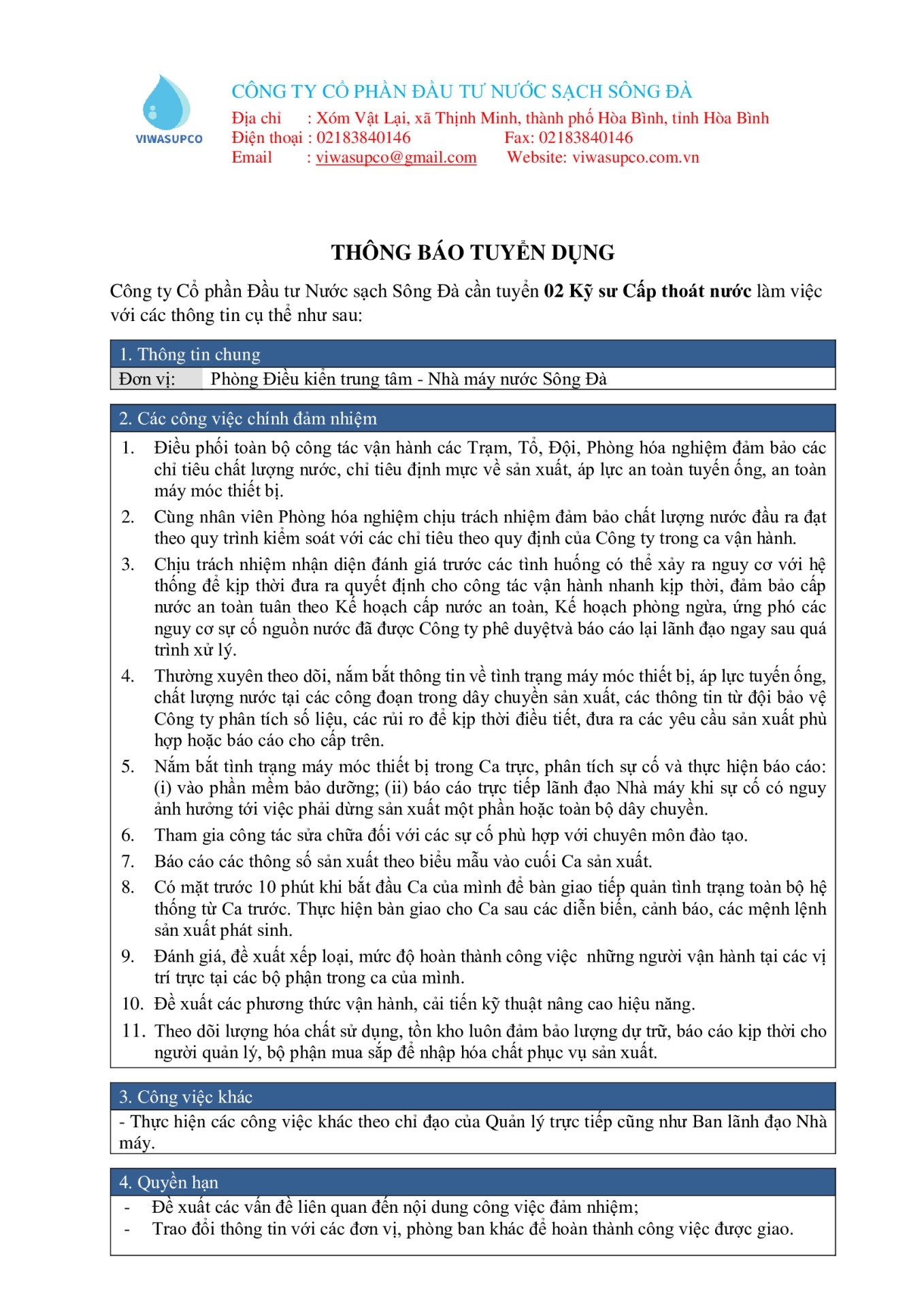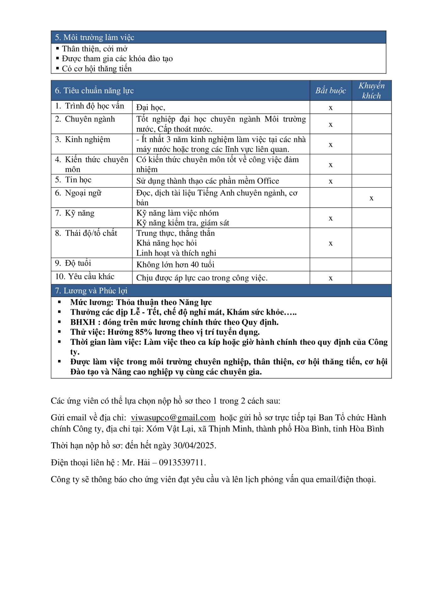 Thông báo tuyển dụng Kỹ sư chuyên ngành Cấp thoát nước, Môi trường nước14:53 - 02/04/2025Tuyển dụng, Lượt xem: 889 Chia sẻ: