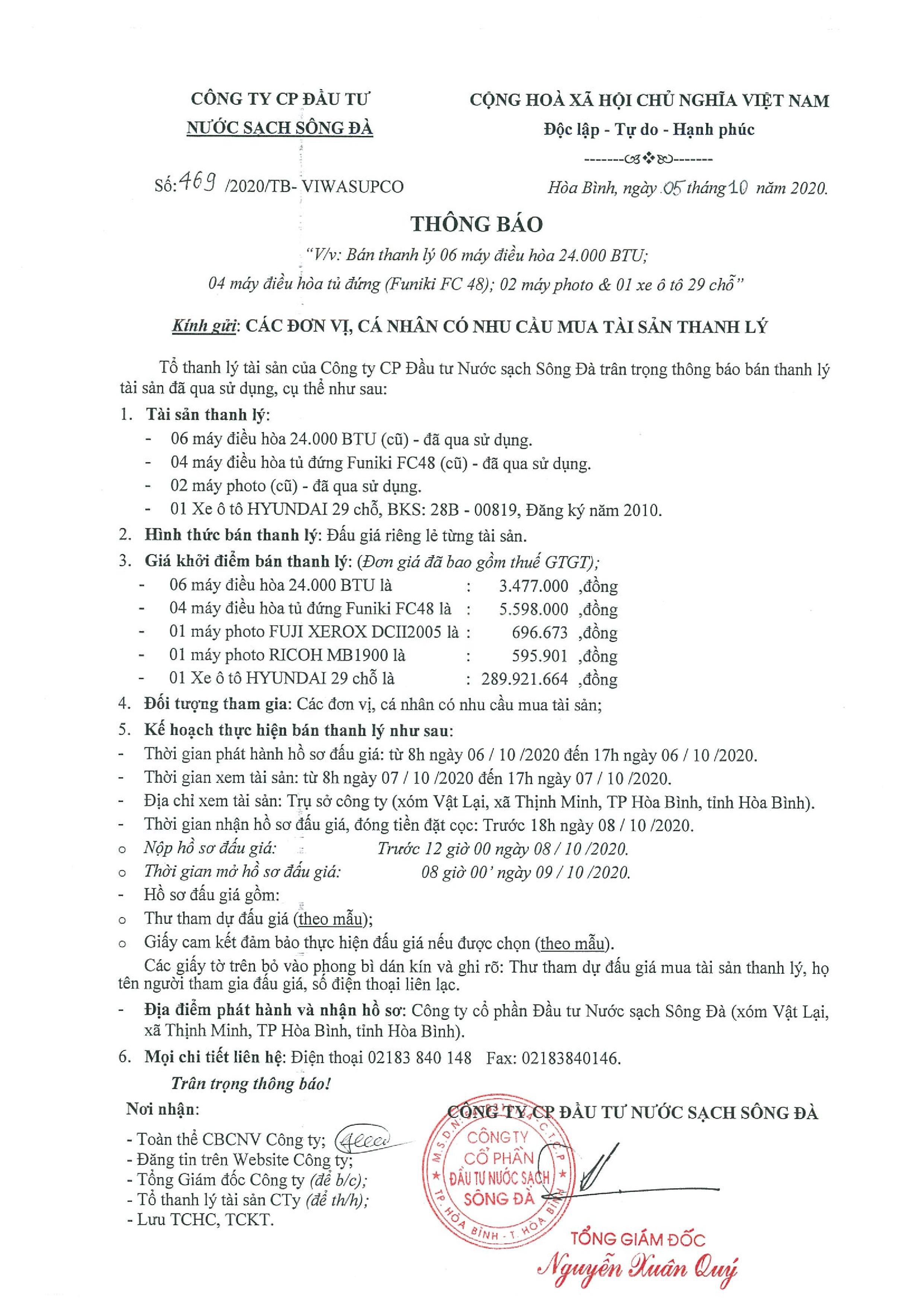 Thông báo về việc: Bán thanh lý tài sản đã qua sử dụng của Công ty.Thông báo về việc: Bán thanh lý tài sản đã qua sử dụng của Công ty.