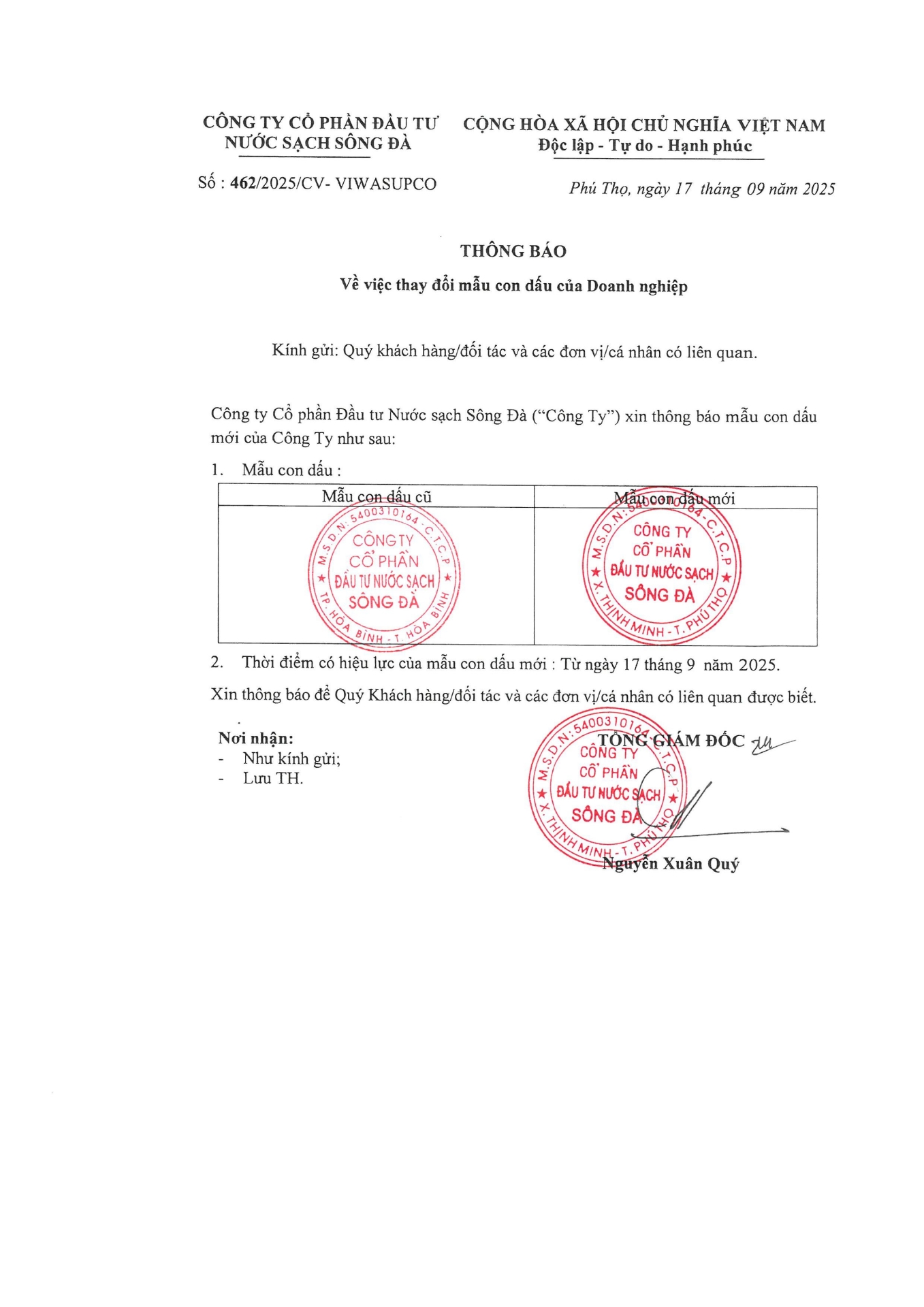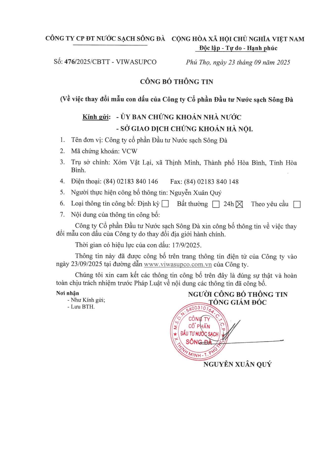 CBTT: Thông báo thay đổi mẫu dấu doanh nghiệp23/09/2025Thông tin chung, Lượt xem: 290 476-cong-bo-thong-tin-ve-viec-thay-doi-mau-con-dau-cua-cong-ty.pdfChia sẻ: