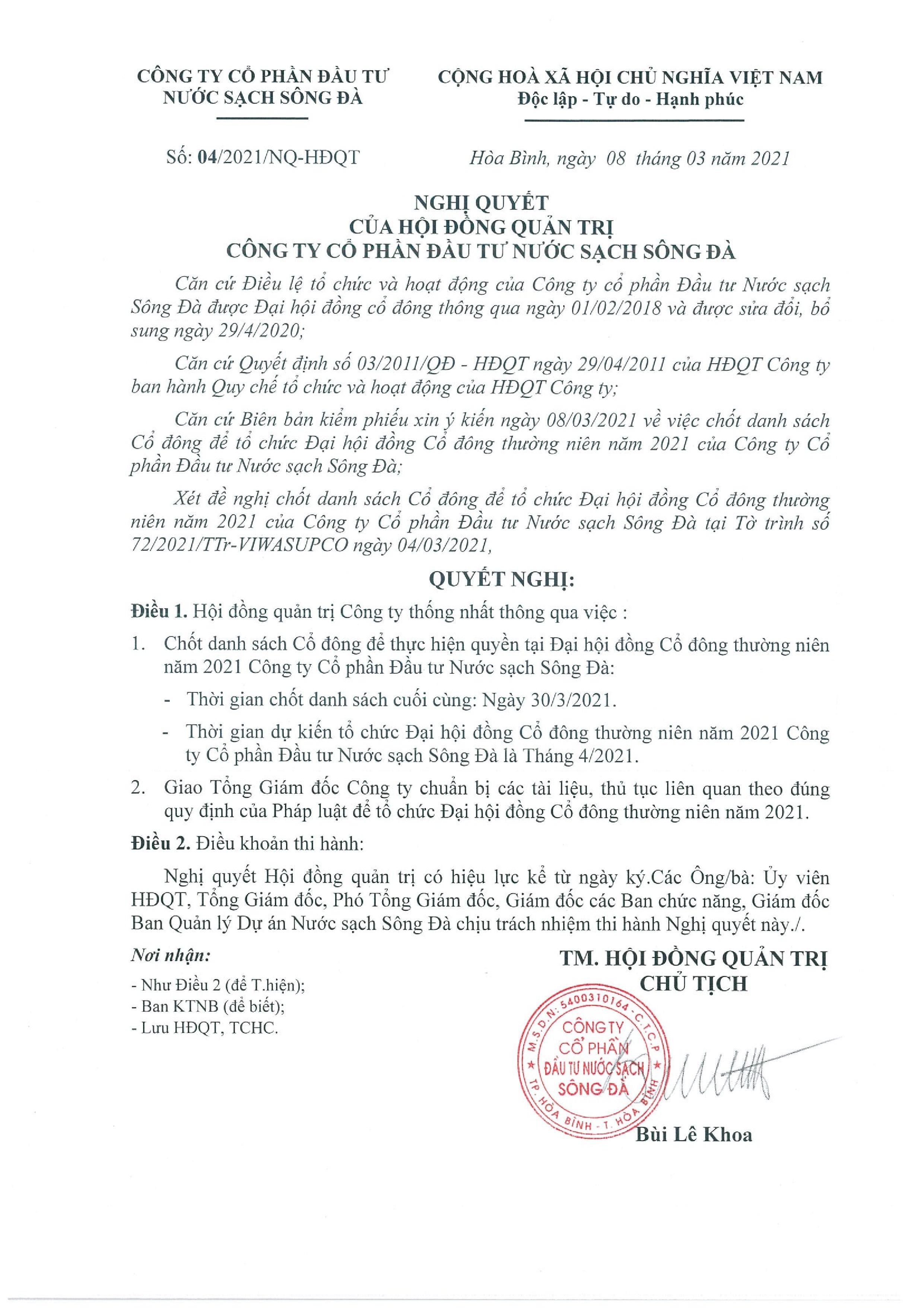 Nghị quyết của Hội đồng quản trị Công ty về việc: Chốt danh sách cổ đông năm 202108:48 - 09/03/2021Quan hệ cổ đông, Lượt xem: 1502Nghị quyết của Hội đồng quản trị Công ty về việc: Chốt danh sách cổ đông năm 2021.Chia sẻ: