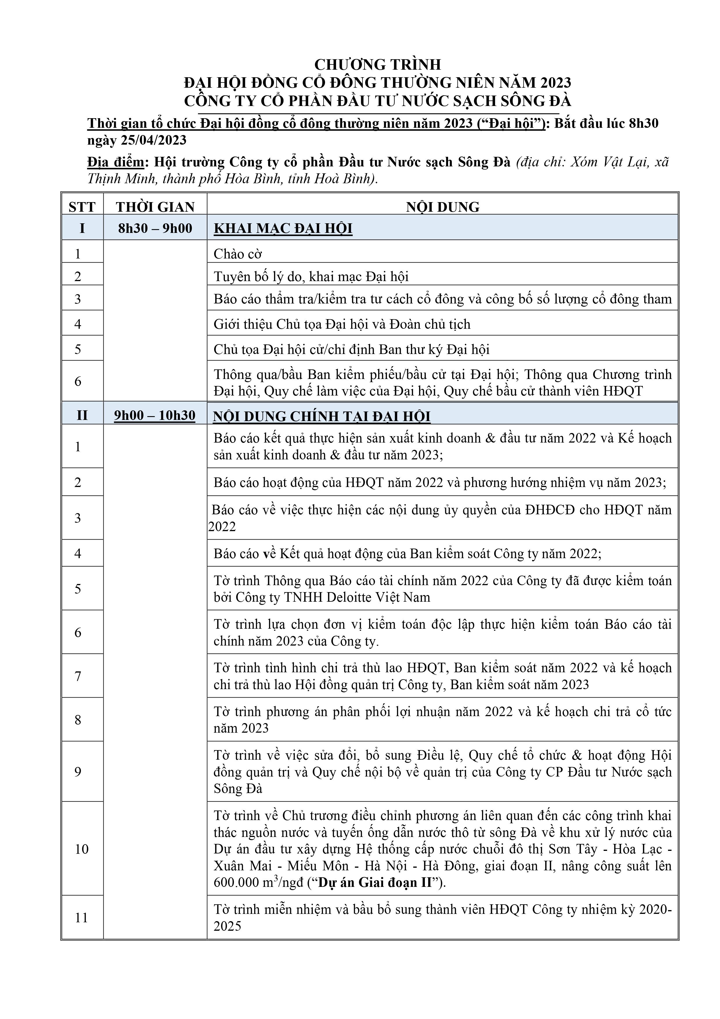 Thông báo mời họp Đại hội đồng Cổ đông thường niên năm 2023