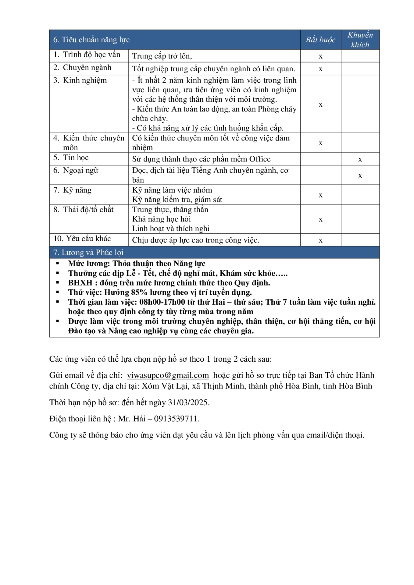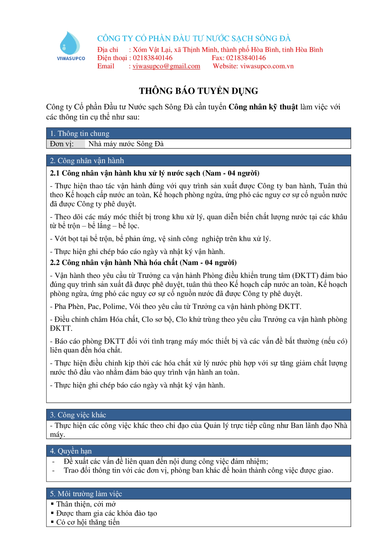 Thông báo tuyển dụng Công nhân kỹ thuật