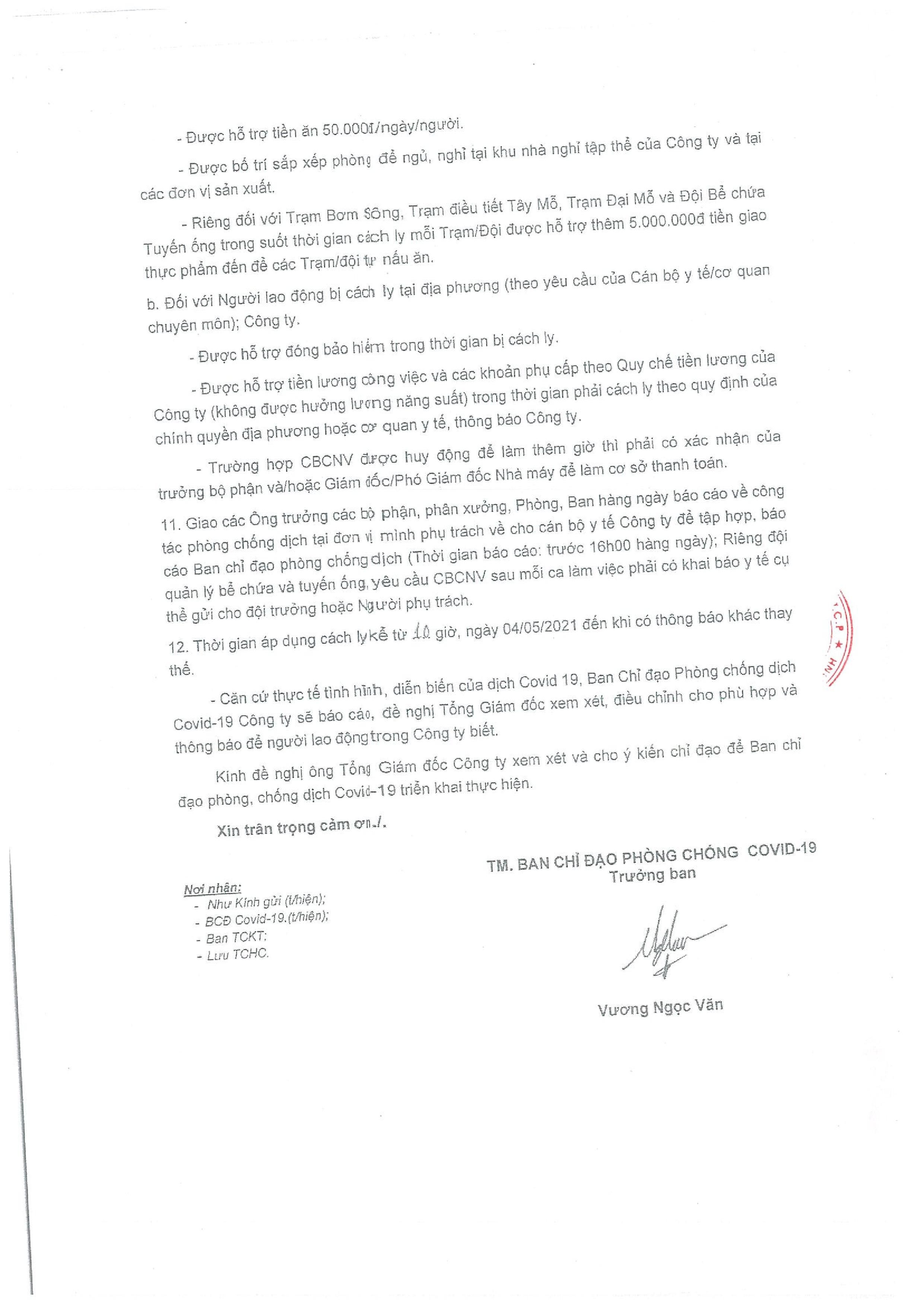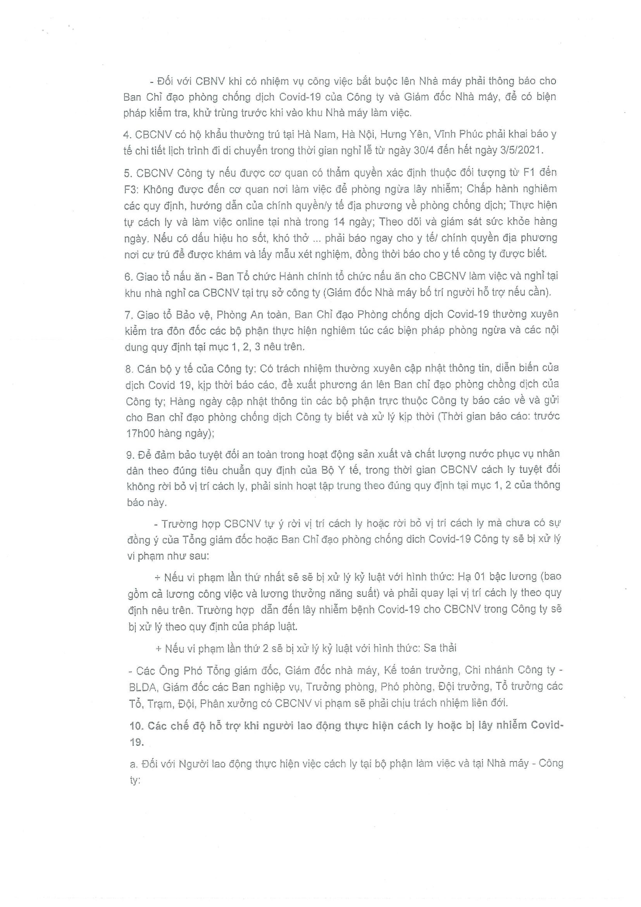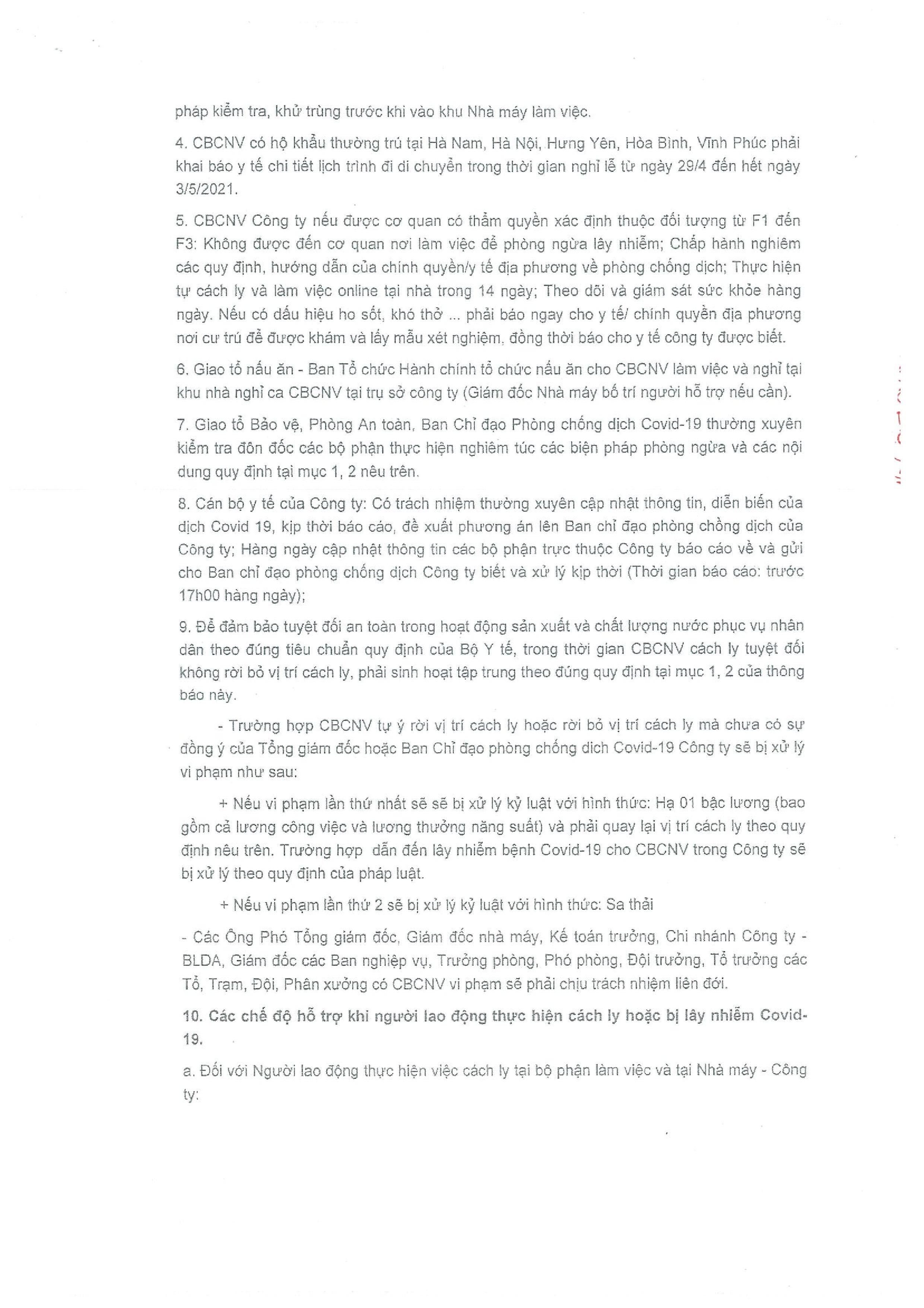 Thông báo về việc: Thực hiện phương án cách ly sản xuất để phòng dịch Covid-19 tại Công ty Cổ phần Đầu tư Nước sạch Sông Đà